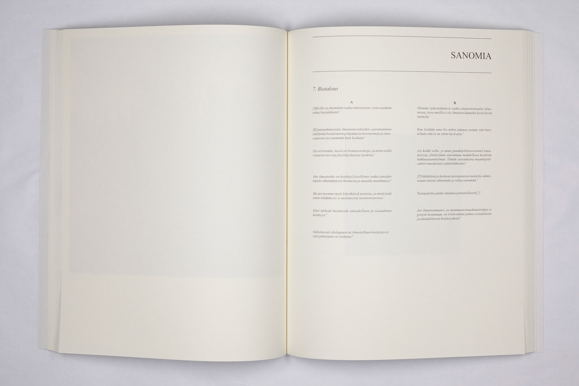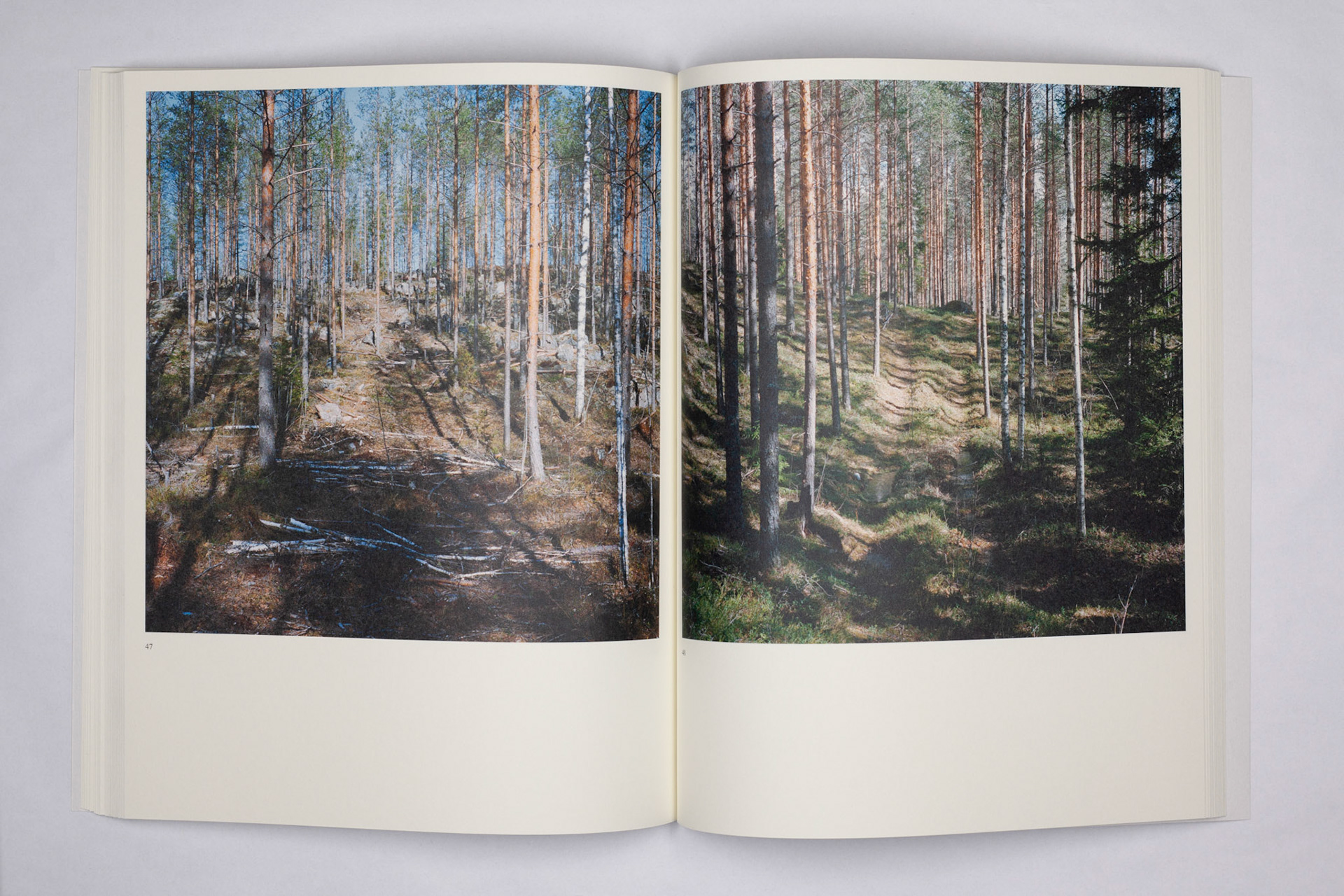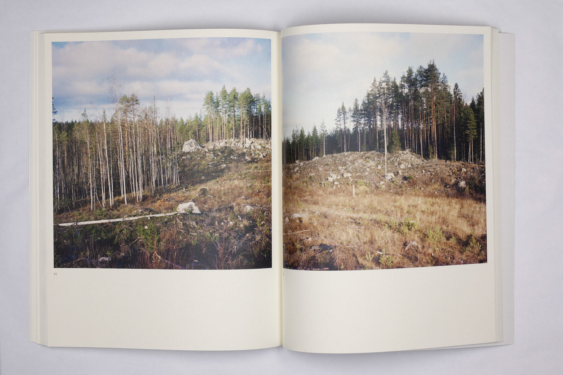 The photobook Vihreän kullan kuume: Raportti Suomen metsien tilasta (Green Gold Fever: Report about the state of forests in Finland) packs up a research-based landscape photography series (Vihreän kullan kuume / Green Gold Fever, 2017–2022) in a publication. Containing 76 carefully composed color images from field works around Finland, the book studies the impacts of industrial forestry in the Finnish landscape. Focusing on distinctive features of landscape on numerous sites and areas thorough Finland, a holistic view of the ecological state of forests is projected with a systematic approach to photography. While it offers an understanding of the visible environmental condition, the book is structured around a data (120 sources) collected from news media, which plays a key role in a century long but more than ever up to date debate about forest utilization – a subject that touches the core of Finland’s modern history and stretches over national borders, as environmental degradation and climate change have become fundamental questions for humanity’s survival. Text collages made of statements and commentaries of different voices are set side by side with the photographed reality. The resulting book is a thematically arranged discussion between those who support and those who criticize current forestry practices – without forgetting the third party, the forest itself, whose mute voice is narrated though photography.